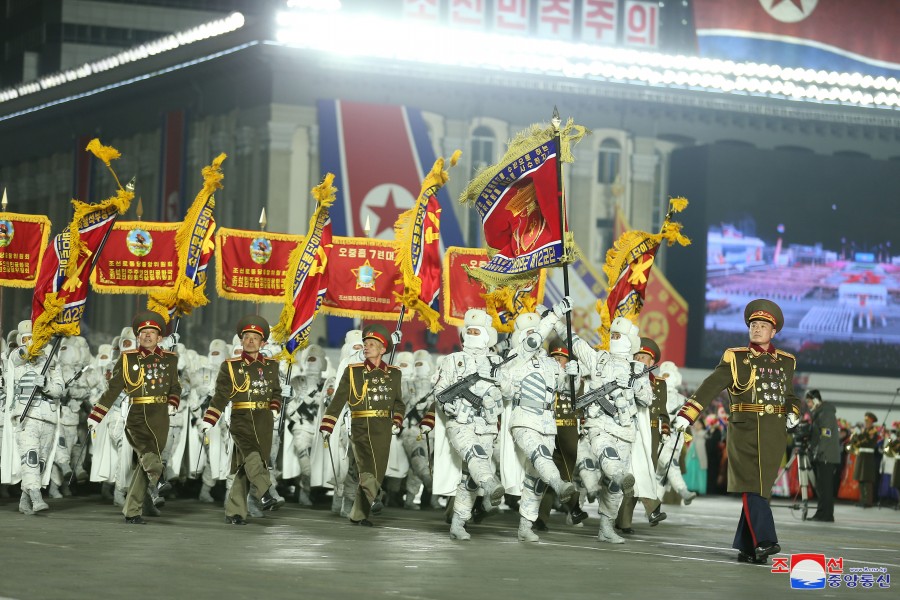 庆祝朝鲜劳动党的革命武装力量——朝鲜人民军建军75周年阅兵式2月8日在首都平壤的