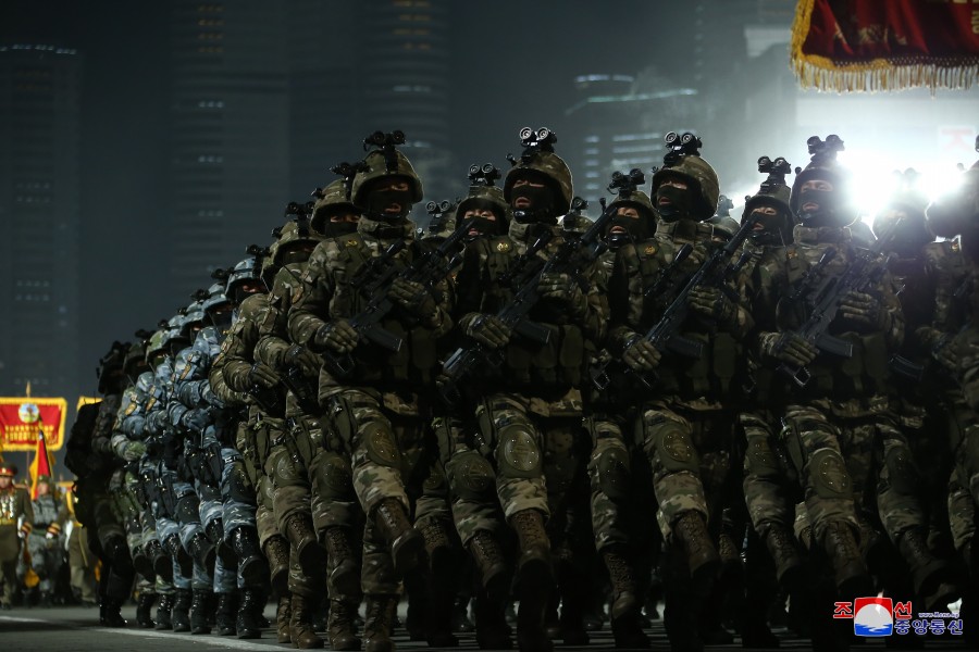 朝鲜人民军在宣布自主独立国家的灵魂和象征——正规武装力量诞生的建军阅兵场上,承载着全国人民的激情欢呼和巨大期待,身怀神圣使命和雄心壮志,迈出实现最精锐强军目标的第一步。