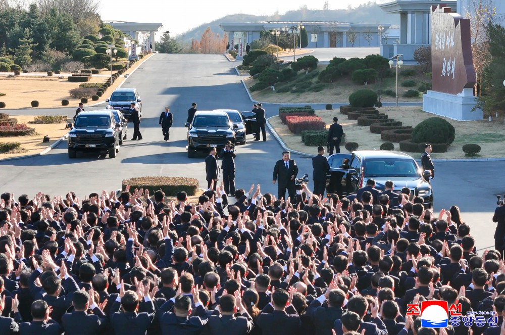 金正恩同志抵达时,全体参加者爆发出热烈的“万岁”欢呼声,表达他们在自己单位谒见伟大的我们国家强大性和尊严的最高代表者——金正恩同志的无限激情。
