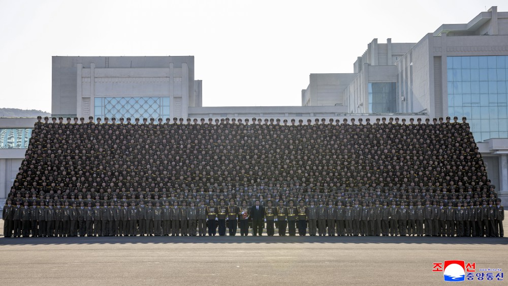 金正恩同志表示相信,忠于朝鲜劳动党领导的社会安全军全体官兵续写比过去80年沿革史更加宝贵而光荣的服务之篇章,并同他们合影留念。