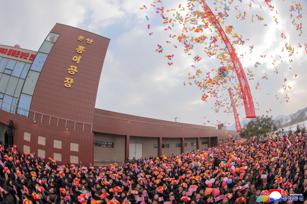 在平安南道殷山郡新建成的造纸厂竣工典礼12月28日举行。