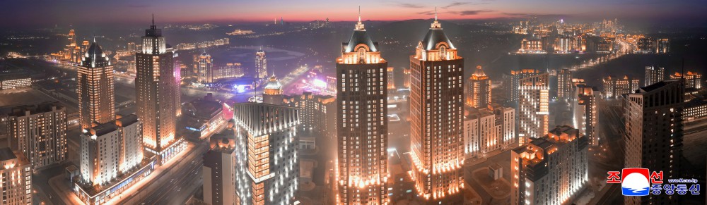 首都建设者高举党中央交给的平壤市五万套住宅建设指挥部旗,完美无缺地建成大建筑群,为伟大的金正恩时代增光添彩,创造了献给党的九大的最大劳动成果,首都市民则切身感受到耀眼的平壤繁荣期。竣工典礼场所洋溢着他们的无比自豪、莫大激情和欢喜。