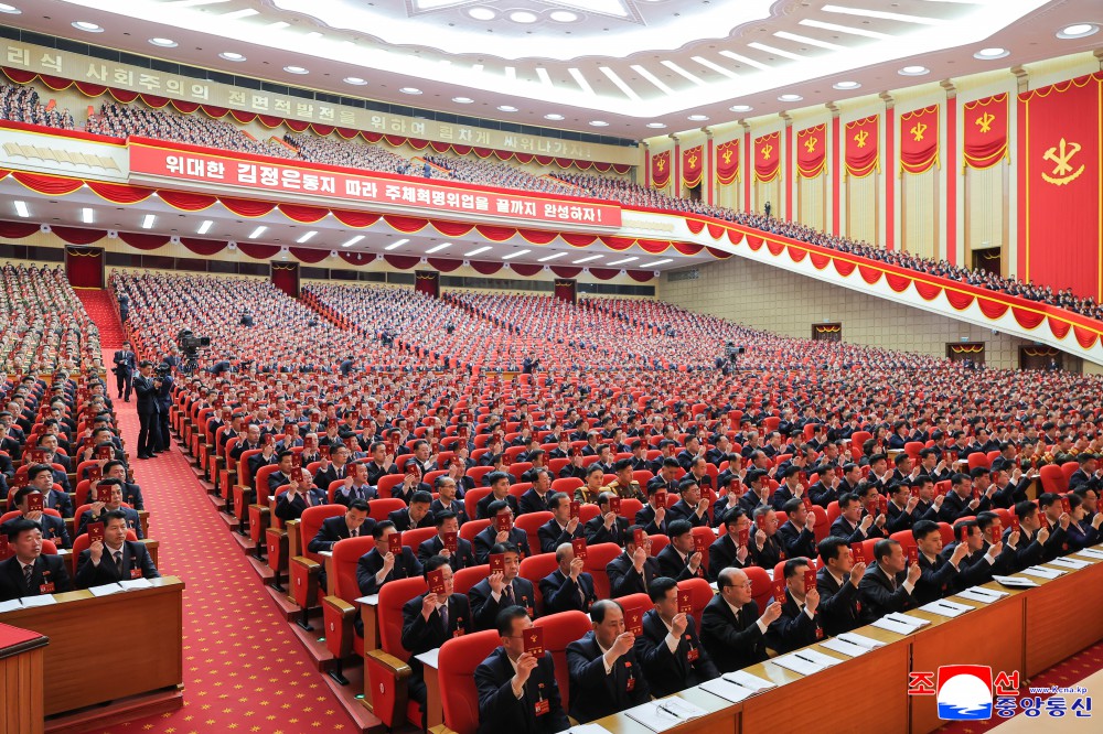 大会审议在进一步巩固我们党特有的组织思想基础、规范地切实保证党务工作和党活动方面意义重大的问题,并通过了在朝鲜劳动党章程上明文规定相关内容的决议。
