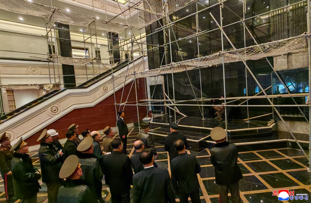 金正恩同志指出纪念馆内部的一些不合理因素后,指明其修改方向,并就高标准保障收尾工程质量做了具体指教。