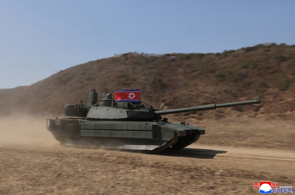 新型主战坦克集我们朝鲜式装甲武器系统技术而大成,是大力进行第二次装甲武力革命的党中央战略意图得到落实的骄傲结晶。