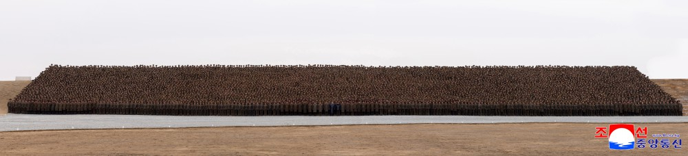 合影结束后,全体青年建设者齐声高呼誓死保卫党中央、誓死贯彻党政策的喊声,更加坚定了一个真谛:一心一意忠诚拥护金正恩同志的思想和领导,就有青春的高价值人生,也有子孙万代的美满幸福。