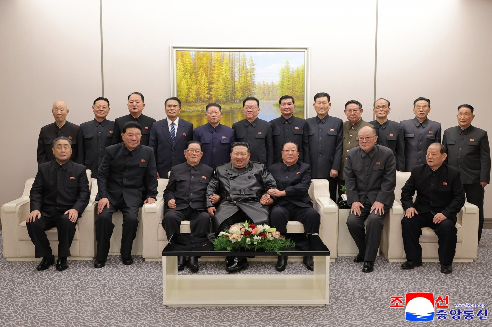 金正恩同志指出,始终与我们党的领导史在一起的长久建军史上印有退役将领们在一生的戎马生涯中以无比的牺牲精神和不屈的气概衷心拥护党和祖国的高贵忘我献身足迹。金正恩同志同为加强军力献出一切的退役将领们合影留念。
