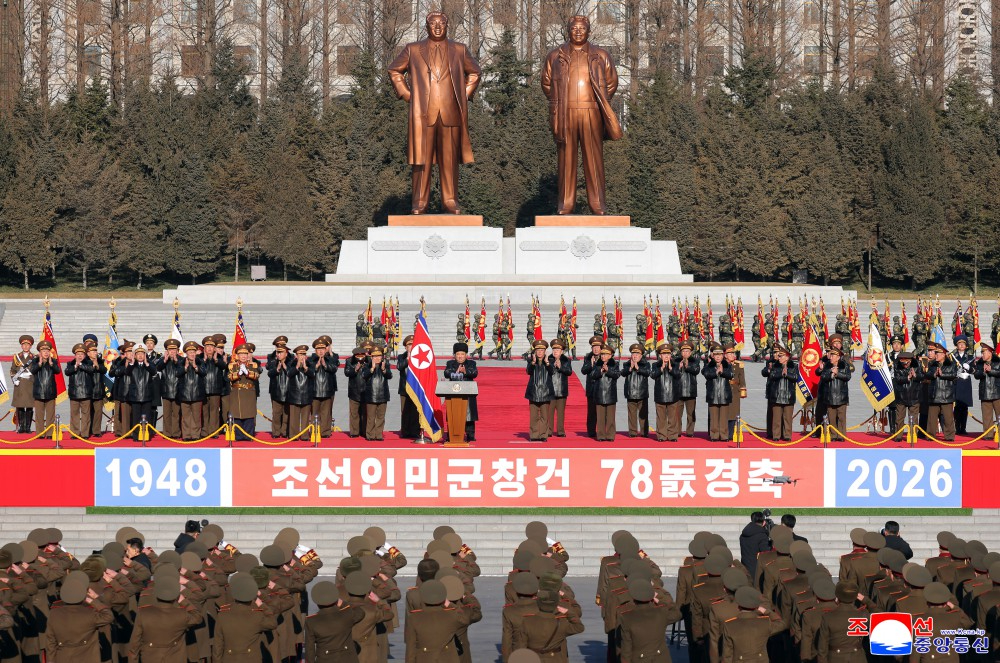 全体参加者齐声喊出“誓死保卫”,喊声响彻2月的天空,表达了他们要永远发扬光大朝鲜人民军的伟大声誉和荣耀的盟誓。朝鲜人民军始终忠于党的军队、人民的军队这一神圣名称,以特有的精神和灵魂创造了传奇式胜利和奇迹年代。