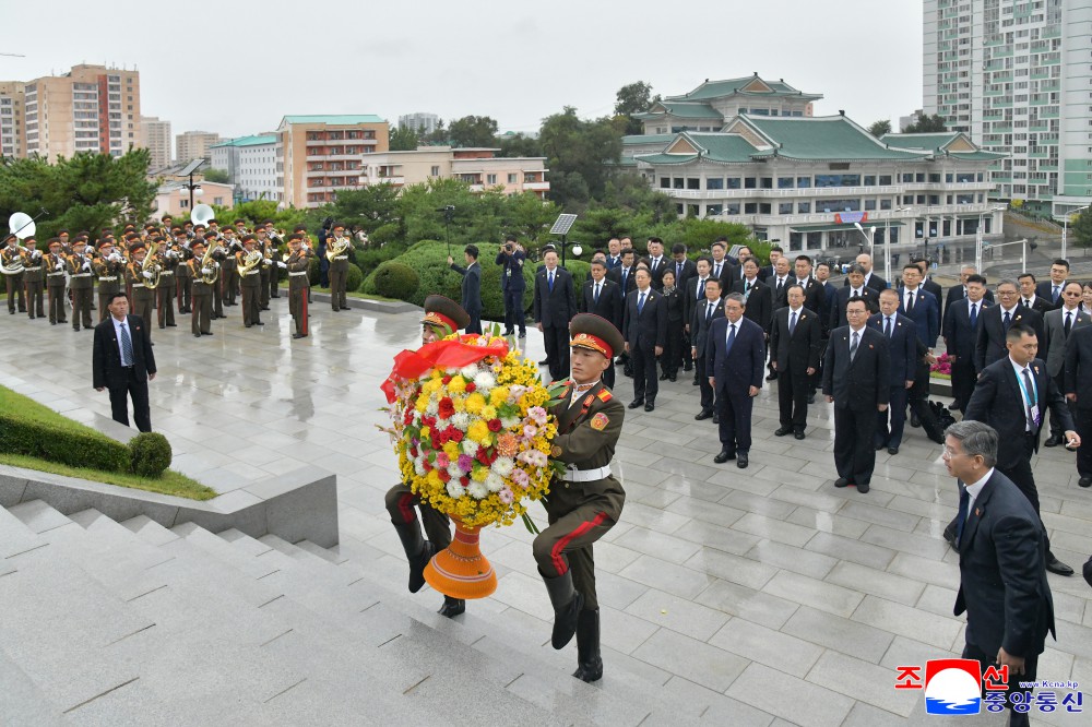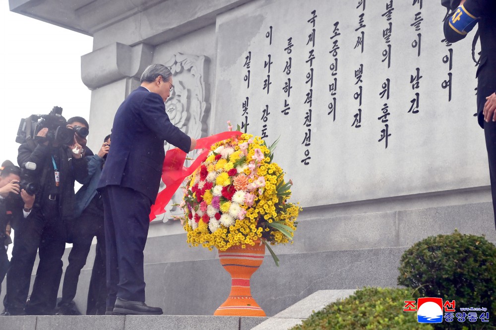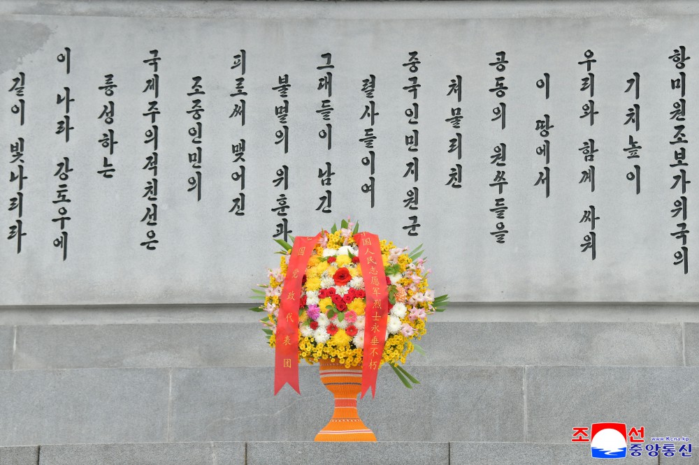 同日,中华人民共和国党政代表团前往位于安州市的中国人民志愿军烈士陵园,凭吊志愿军烈士。(完)