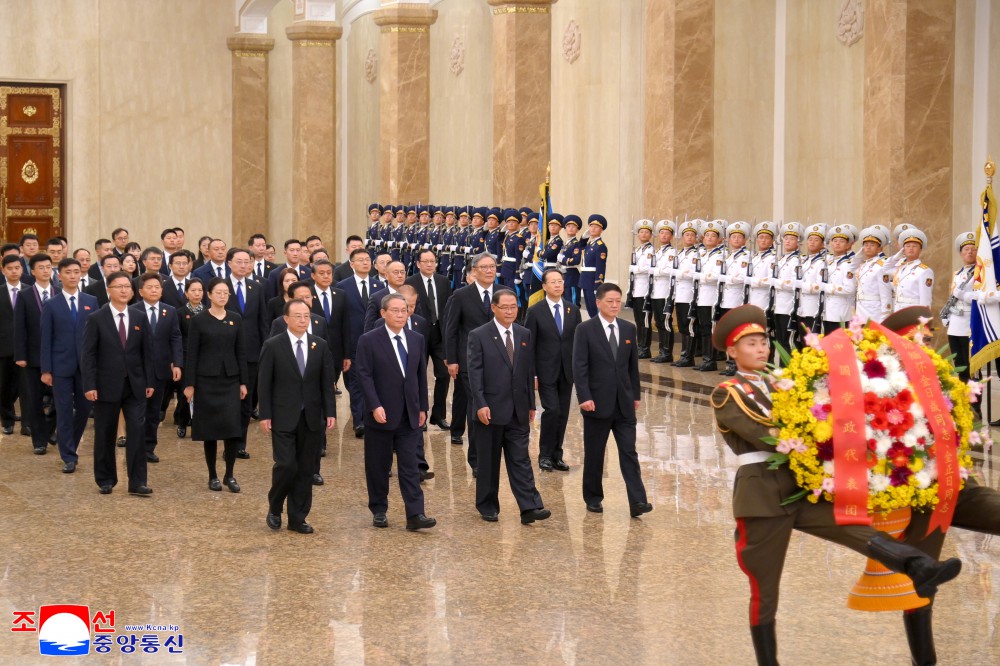 朝中社平壤10月11日电 中国共产党中央委员会政治局常务委员会委员、中华人民共和国国务院总理李强同志10日前往锦绣山太阳宫,向伟大领袖金日成同志和伟大领导者金正日同志表示崇高敬意。