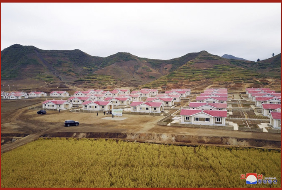 朝中社平壤10月2日电 朝鲜劳动党委员长、国务委员会委员长、武装力量最高司令官金正恩视察金化郡灾后恢复重建工地。