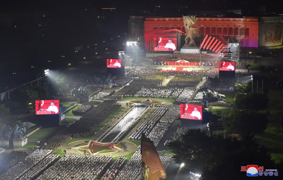 无数烟花驾着要继承先烈的宝贵灵魂提前争取朝鲜式社会主义新胜利的强烈志向和意志强烈沸腾的战胜赞歌之旋律,陆续腾空绽放,更加坚定了依靠伟大思想的力量、团结的力量勇往直前的信念道路上有一切胜利和光荣这一真谛。