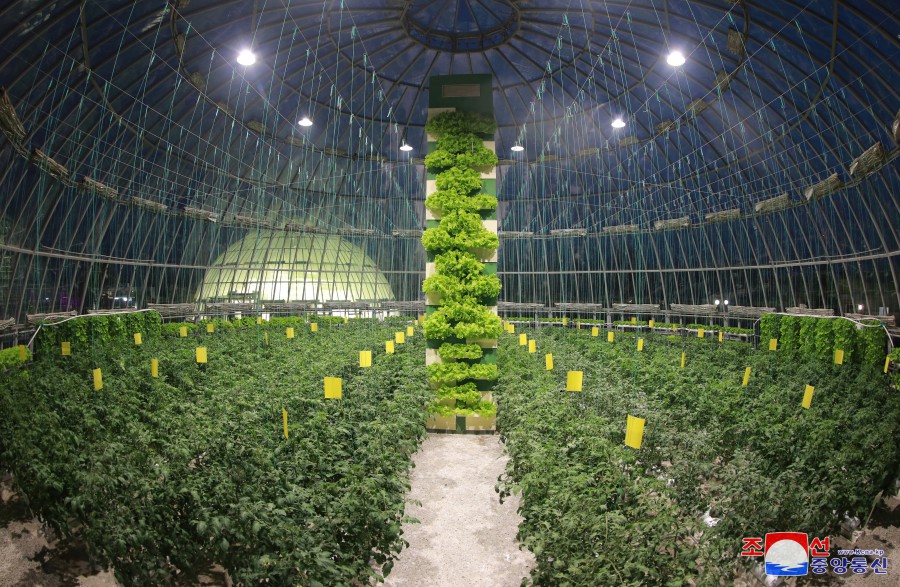 朝鲜人民军官兵一心忠诚拥护党中央的特别命令,发愤图强,发扬顽强的攻击精神,大显朝鲜式创造气概,仅用一年的时间出色建成跟连浦温室农场比起来规模和产能很大且迭代更新的综合温室和公共建筑物以及与自然景观和谐地融为一体的梯田式住宅,从而在首都郊区展示了“温室城市”、“农场城市”的仙境。