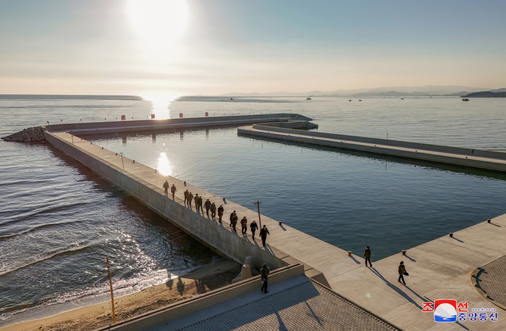 朝中社平壤11月26日电 朝鲜劳动党总书记、朝鲜民主主义人民共和国国务委员长金正恩同志亲临正在新建在咸镜南道新浦市丰渔洞地区的新浦市浅海养殖事业所,了解了工程进展情况和养殖场营造及管理运营准备情况。