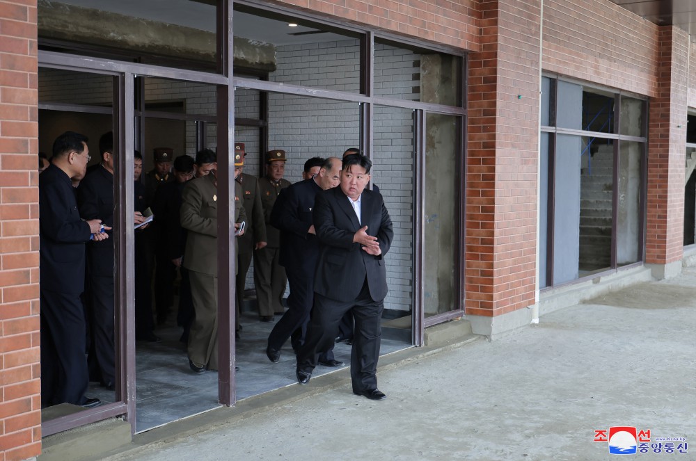 朝鲜劳动党总书记、朝鲜民主主义人民共和国国务委员长金正恩同志3月15日视察了和盛地区第三期1万套住宅建设工地。