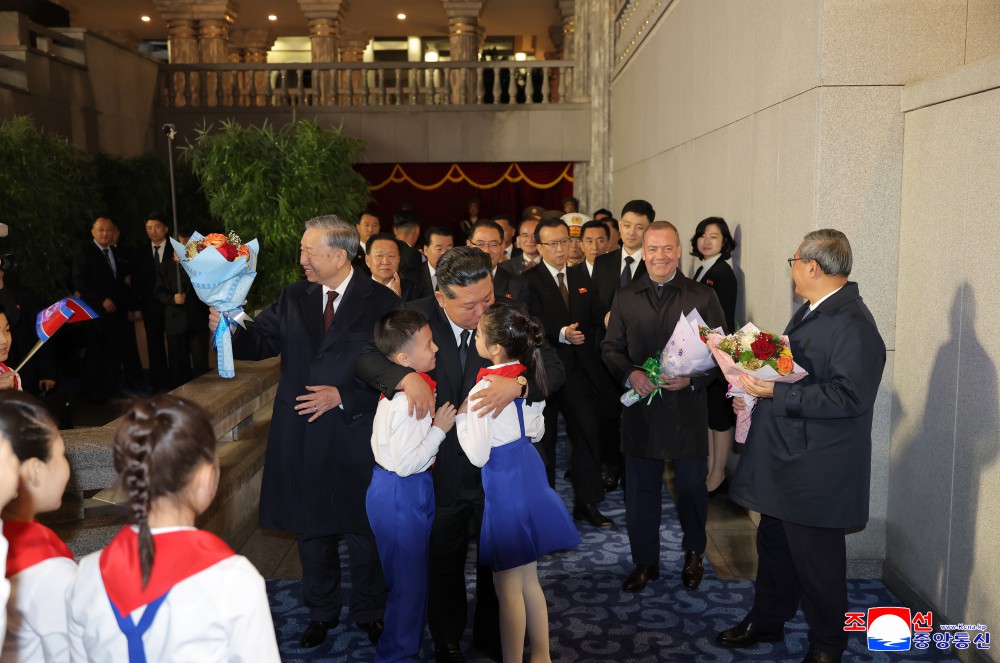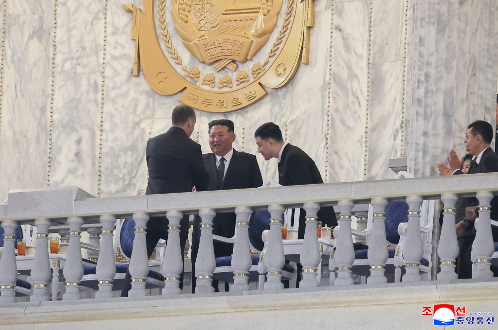 朝鲜劳动党成立80周年庆祝活动参加者、正在我国祝贺访问的一些国家党政代表团、国际民主团体和主体思想研究组织代表团成员、驻朝外交代表、海外友好人士家属和外国客人在招待席就位。