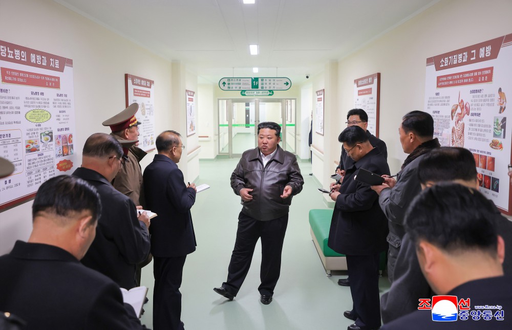 金正恩同志参观了江东郡医院各处。