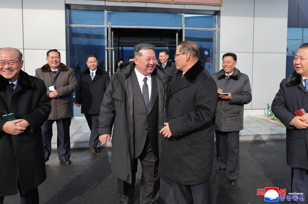 朝鲜劳动党咸镜南道委员会责任书记李正南和企业负责干部郑重迎接了金正恩同志。