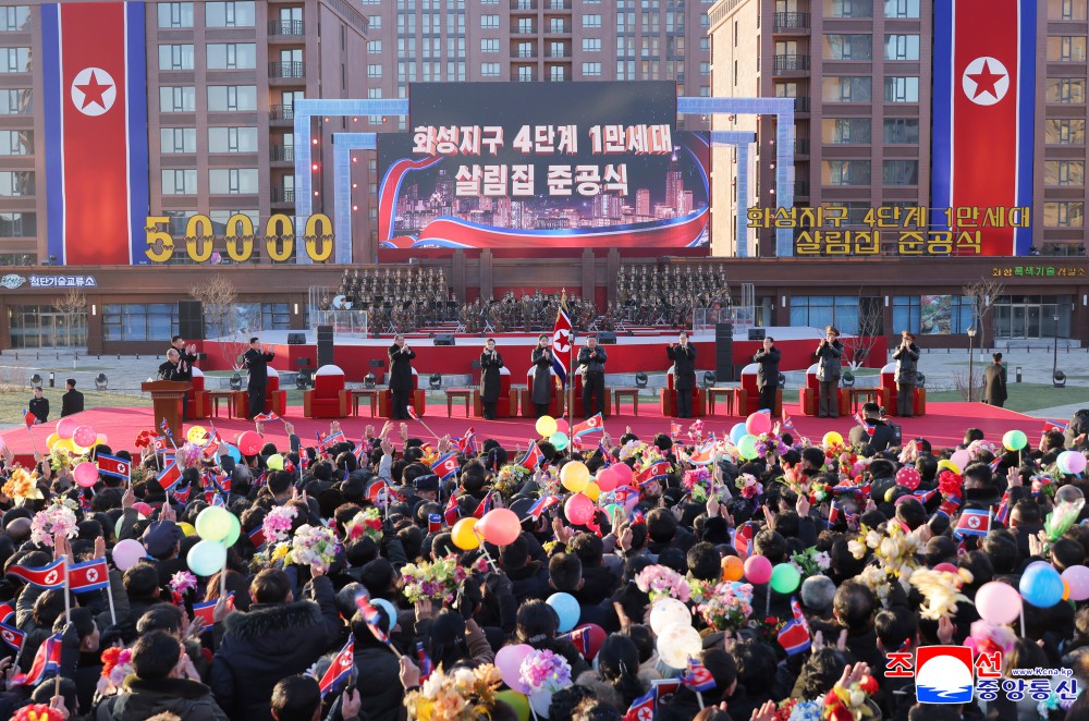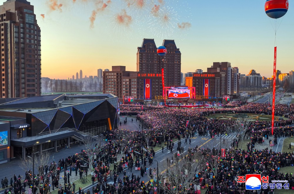 首都建设者高举党中央交给的平壤市五万套住宅建设指挥部旗,完美无缺地建成大建筑群,为伟大的金正恩时代增光添彩,创造了献给党的九大的最大劳动成果,首都市民则切身感受到耀眼的平壤繁荣期。竣工典礼场所洋溢着他们的无比自豪、莫大激情和欢喜。