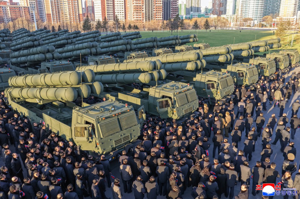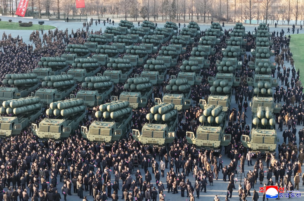 军工部门工人阶级献给朝鲜劳动党第九次代表大会的600毫米大口径火箭炮赠送仪式2月18日在首都平壤隆重举行。