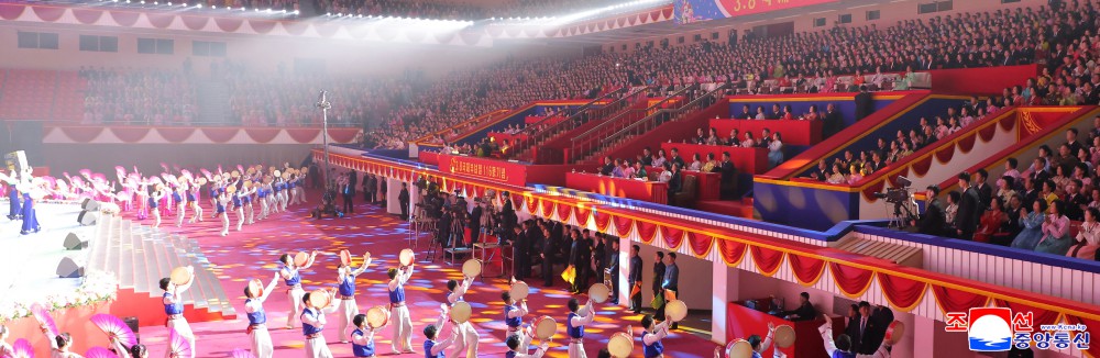 朝中社平壤3月9日电 我国妇女世世代代把爱国精神一脉相承,精心培育美好未来,全国充满对她们的爱戴和尊敬,向她们表示热烈祝贺。在此背景下,纪念国际妇女节演出3月8日在平壤体育馆隆重举行。