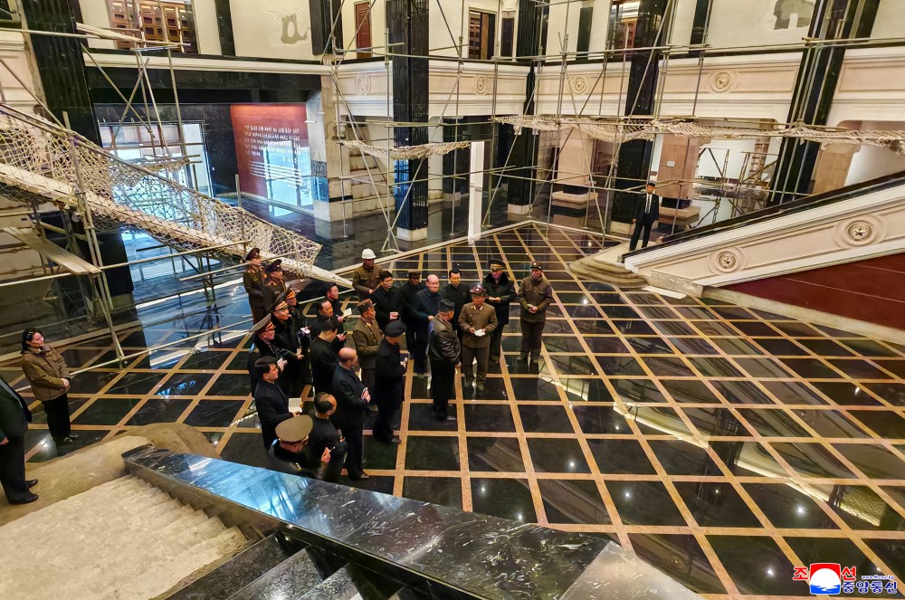 金正恩同志指出纪念馆内部的一些不合理因素后,指明其修改方向,并就高标准保障收尾工程质量做了具体指教。