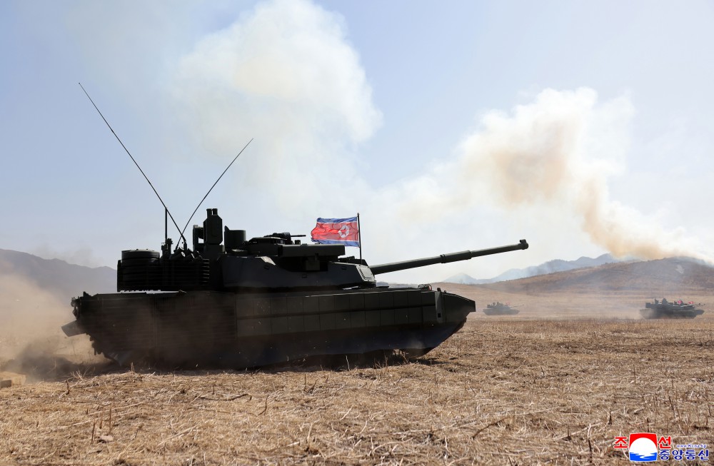 新型主战坦克集我们朝鲜式装甲武器系统技术而大成,是大力进行第二次装甲武力革命的党中央战略意图得到落实的骄傲结晶。