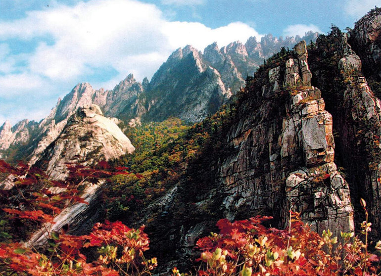 金刚山(금강산),位于朝鲜和韩国交界。大部分山峰位于朝鲜境内。素有朝鲜第一山之称。