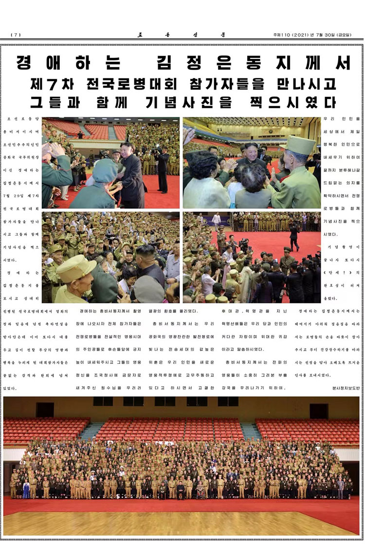 金正恩同志同第七次全国参战老兵大会与会者合影