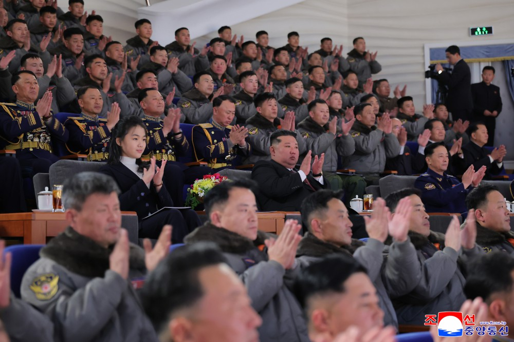 金正恩同志同空军官兵一起观看了演出。