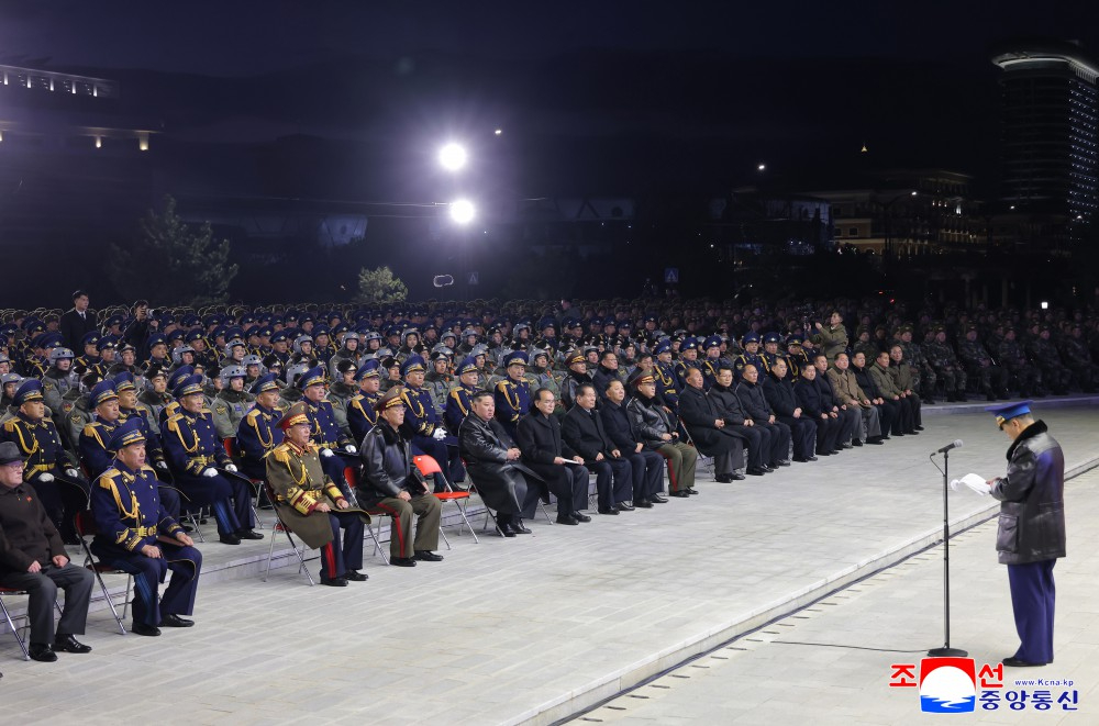 在敬爱的金正恩同志的出席下,纪念朝鲜人民军空军成立80周年报告会隆重举行。