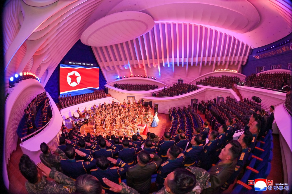 接着,纪念朝鲜人民军空军成立80周年演出在明沙十里剧院举行。