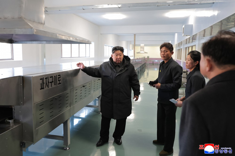 金正恩同志一一察看郡食品厂、服装厂、日用品厂的生产设施和文化福利设施,具体了解了施工情况和运营准备情况。