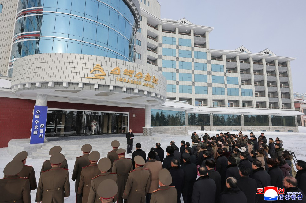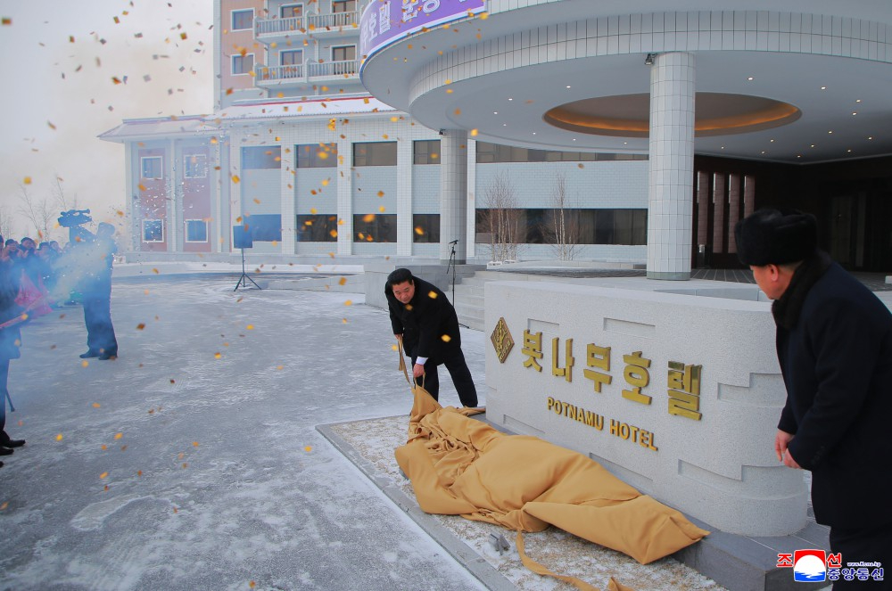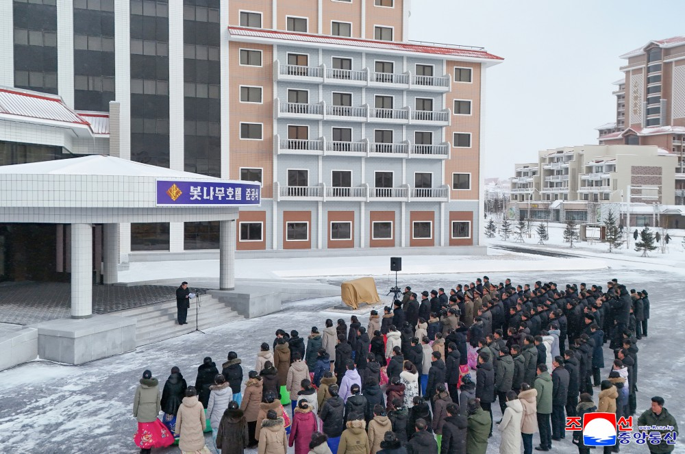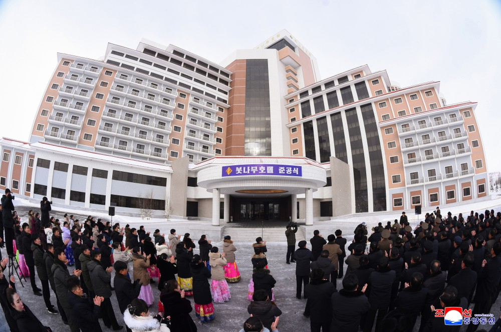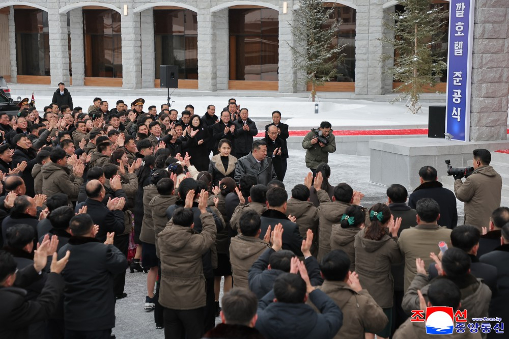省、中央一级机关和武力机关干部、三池渊市干部和饭店员工参加了竣工典礼。