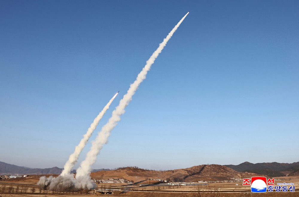 中社平壤1月28日电 朝鲜民主主义人民共和国导弹总局1月27日进行了旨在验证运用新技术的更新型大口径火箭炮武器系统效力的试射。