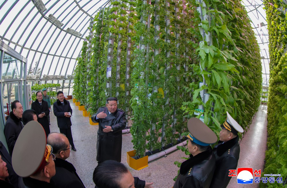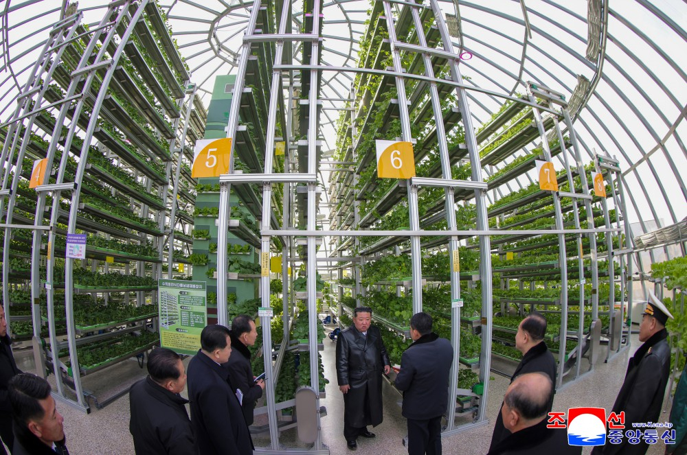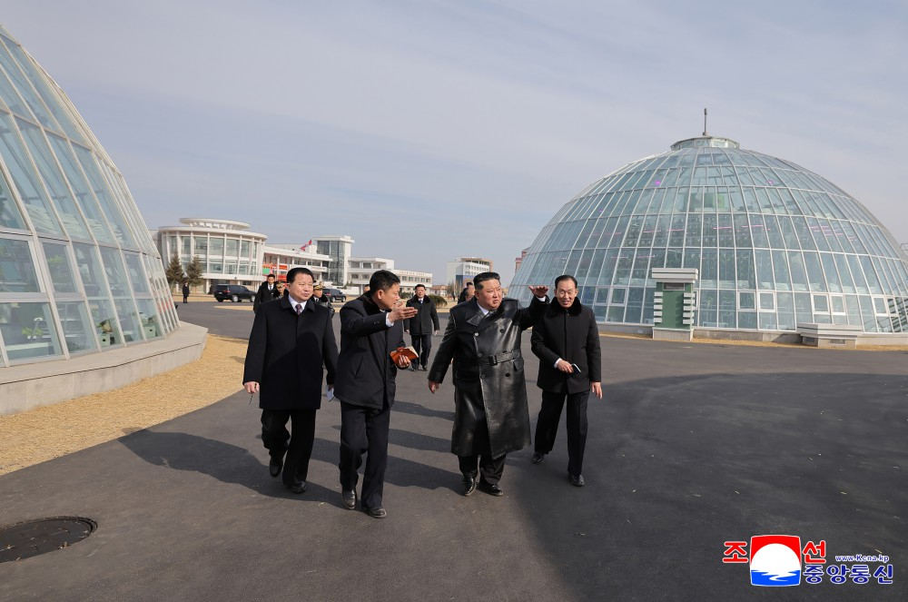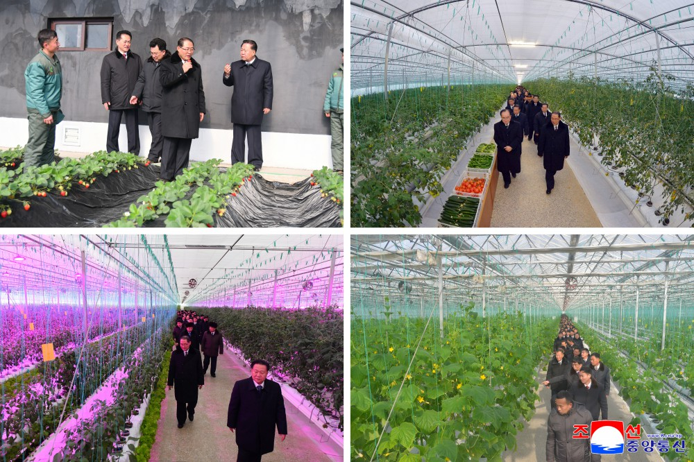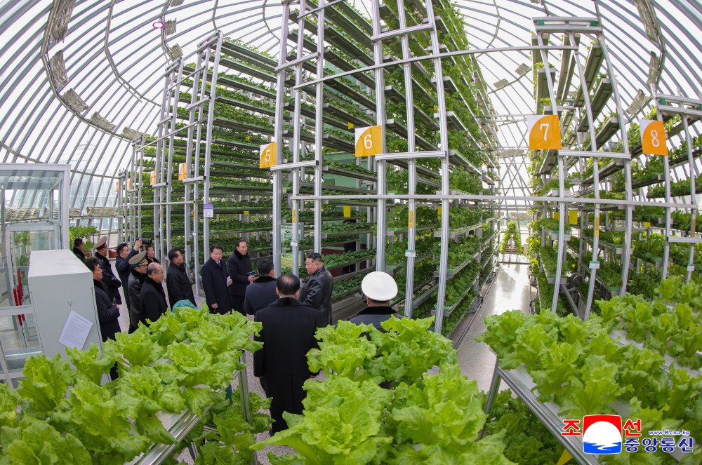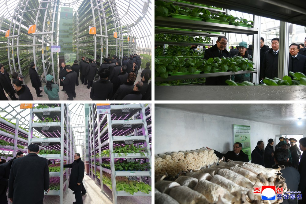 金正恩同志同领导干部一起参观了新义州蔬菜科研中心。