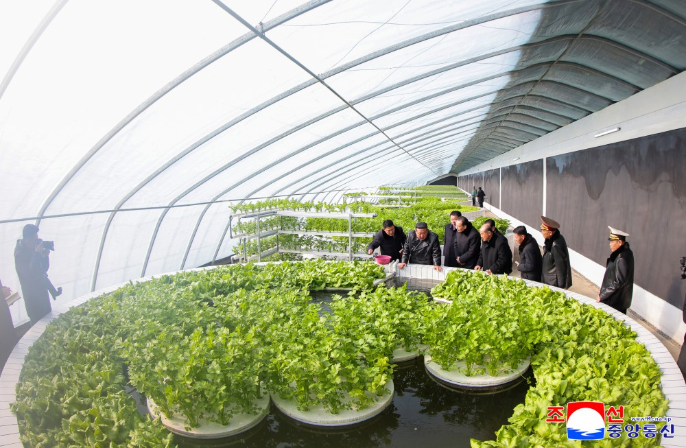 金正恩同志参观了同时进行养鱼和蔬菜栽培的太阳热温室等不同类型的温室号栋。