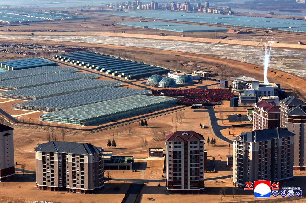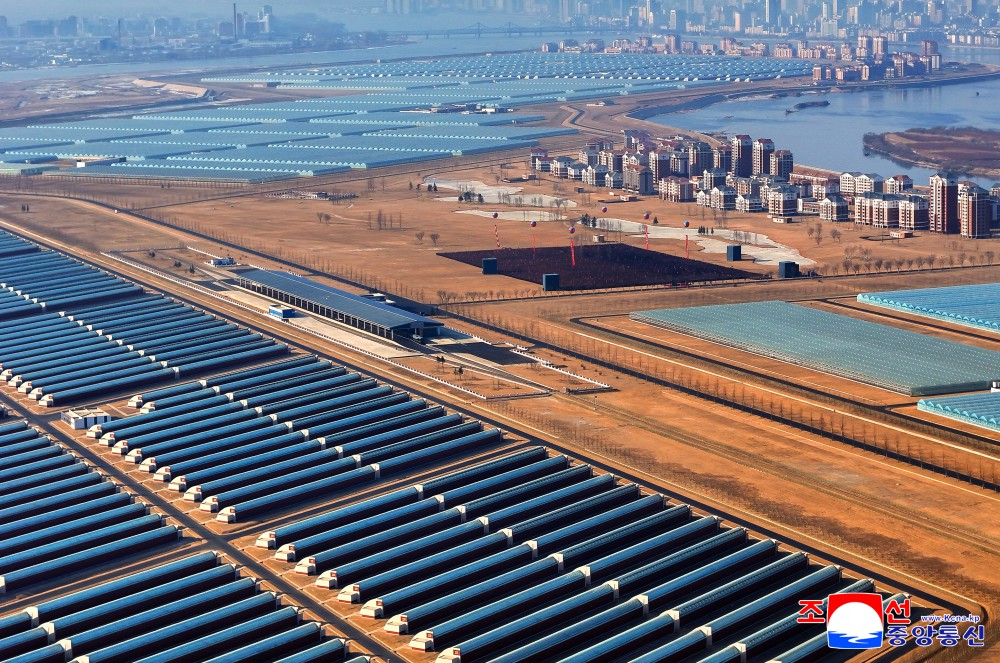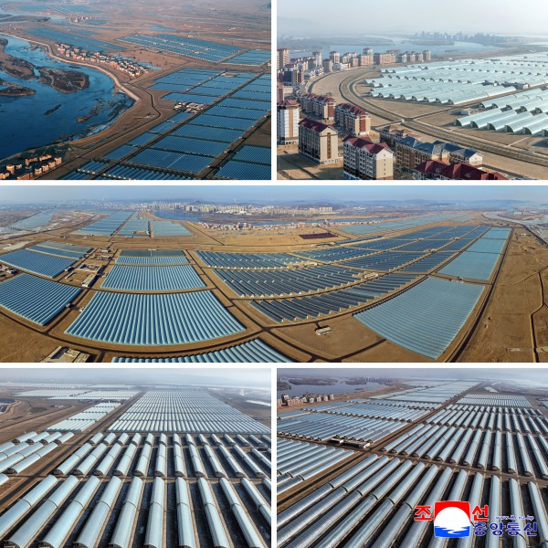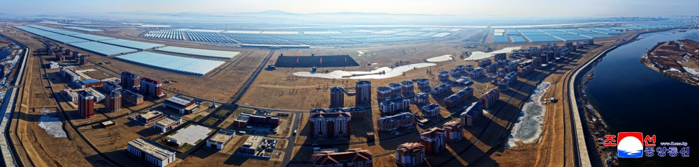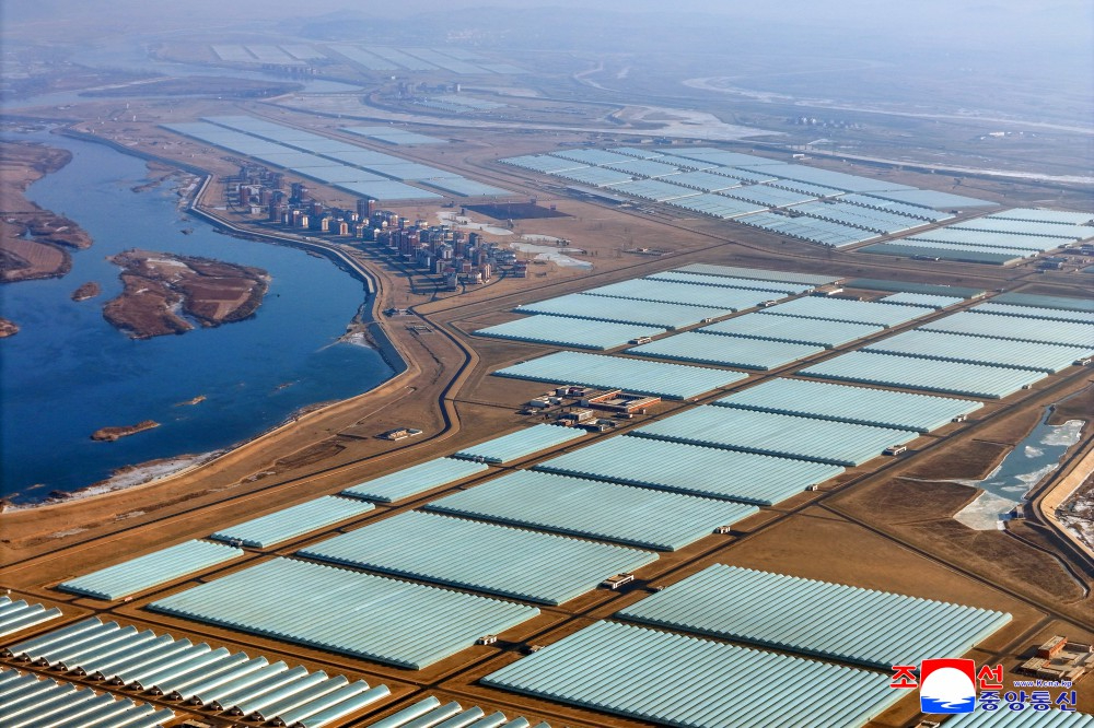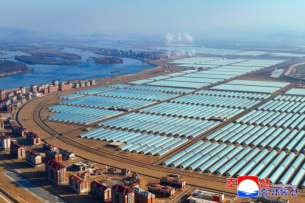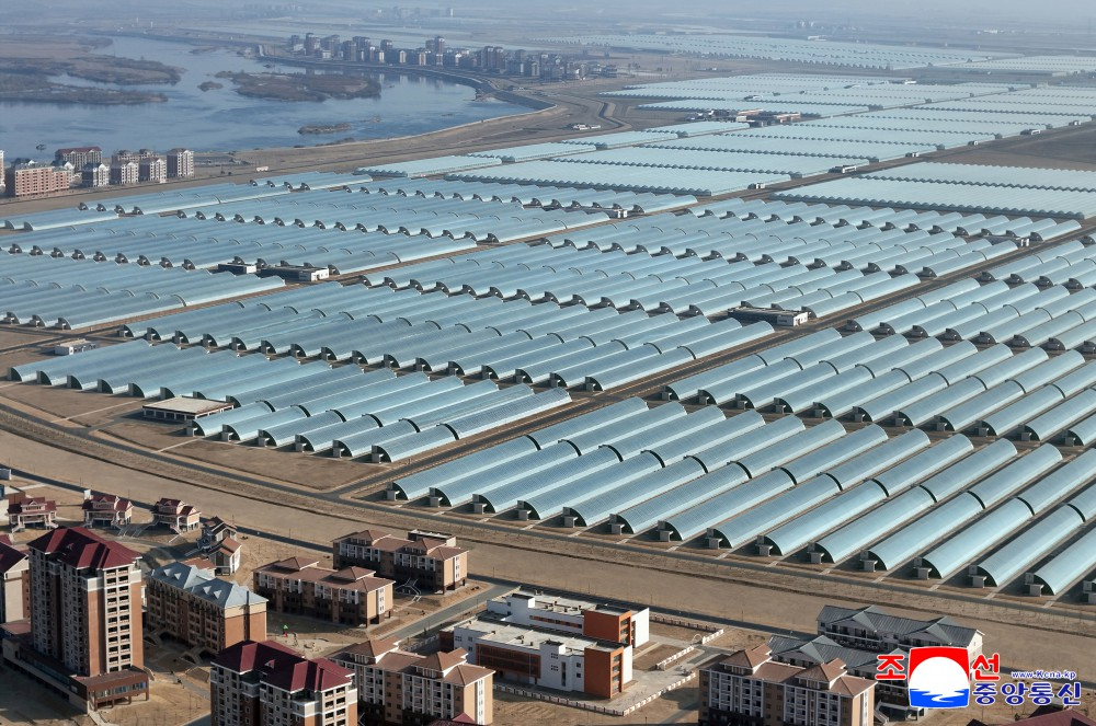 一千数百栋不同类型的现代化温室号栋、蔬菜科研中心、新式住宅、各种文化生活基地与富有特色的园林景观相辅相成的新义州温室综合农场,是见证金正恩时代伟大变迁历史的又一个引以为傲的纪念碑式创造物,是我们青年建设者献给朝鲜劳动党第九次代表大会的忠诚礼物。