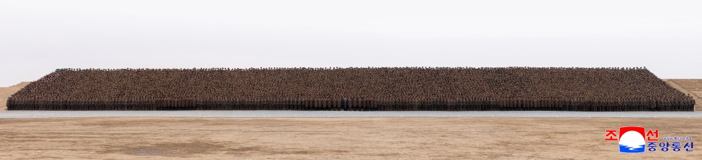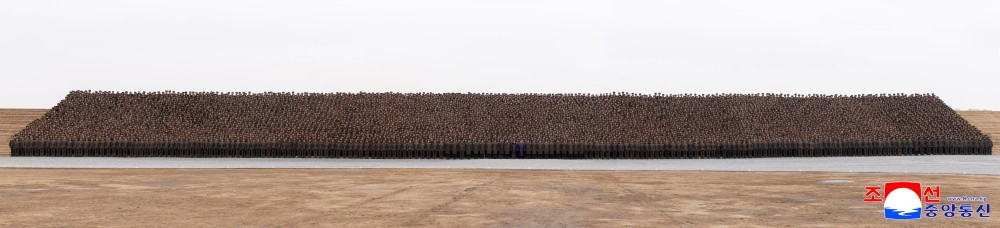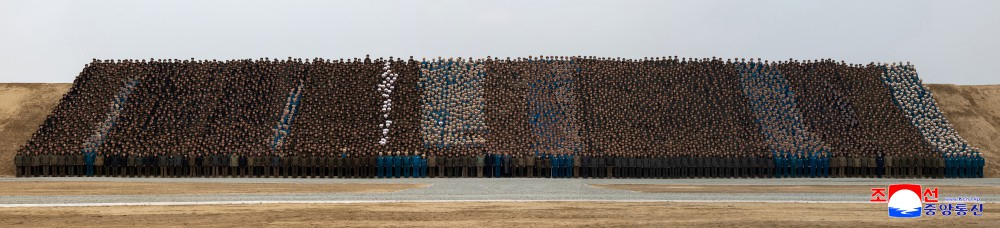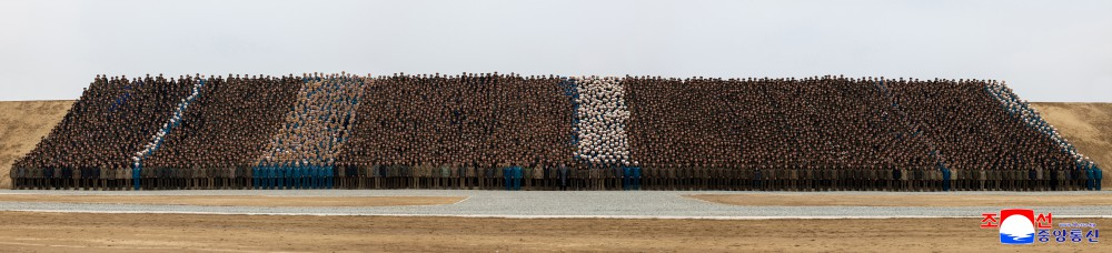 合影结束后,全体青年建设者齐声高呼誓死保卫党中央、誓死贯彻党政策的喊声,更加坚定了一个真谛:一心一意忠诚拥护金正恩同志的思想和领导,就有青春的高价值人生,也有子孙万代的美满幸福。