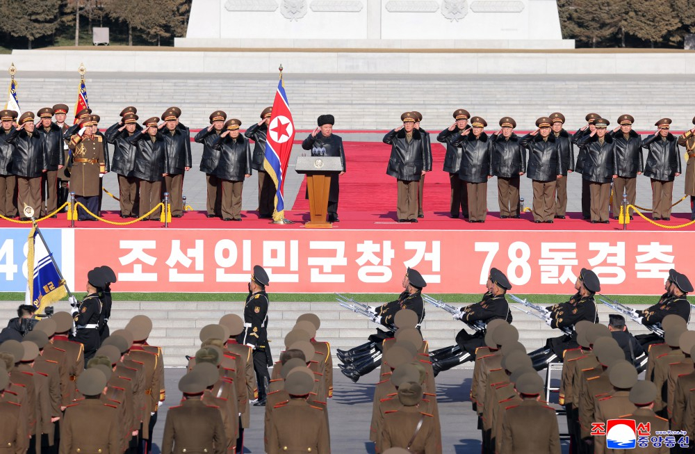 在朝鲜人民军建军78周年之际,朝鲜劳动党总书记、朝鲜民主主义人民共和国国务委员长