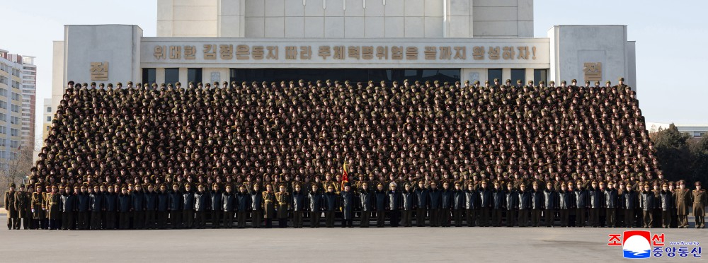 国防省主要指挥员和朝鲜人民军大联合部队首长郑重迎接了