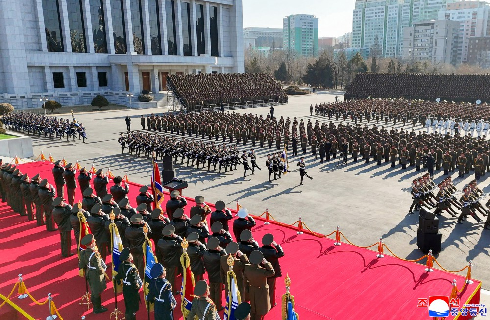全体参加者齐声喊出“誓死保卫”,喊声响彻2月的天空,表达了他们要永远发扬光大朝鲜人民军的伟大声誉和荣耀的盟誓。朝鲜人民军始终忠于党的军队、人民的军队这一神圣名称,以特有的精神和灵魂创造了传奇式胜利和奇迹年代。