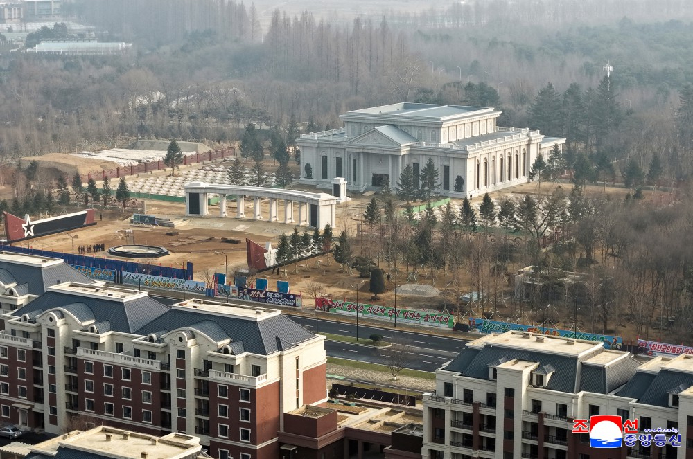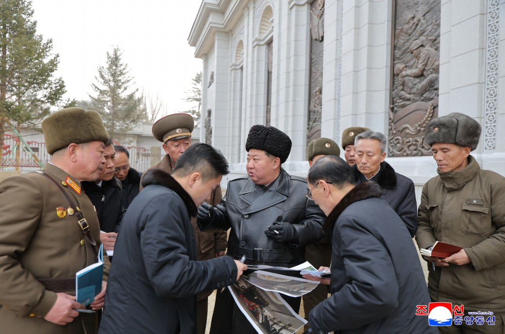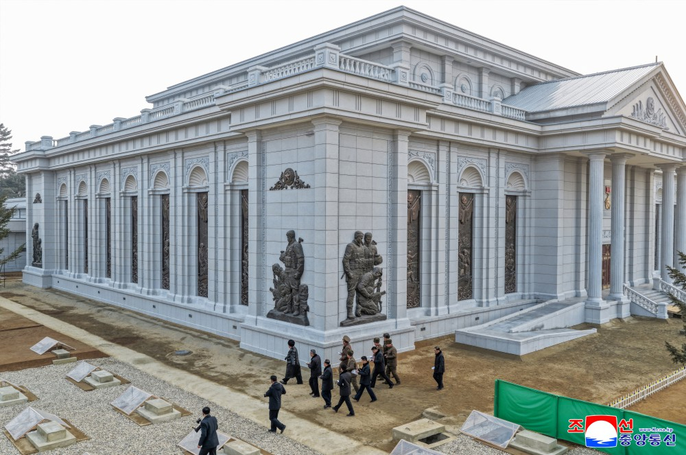 金正恩同志察看纪念馆建设工地,具体了解了工程进展情况和雕像创作及设置情况。