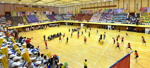 金永南、金己男、崔泰福等领导同志,大学干部和师生观看了群众健美操、保健跆拳道、篮球、排球、羽毛球和民俗游戏等多种项目的比赛。