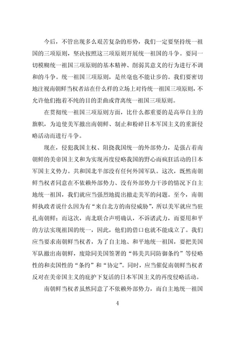 金正日:为贯彻统一祖国三项原则而坚决斗争