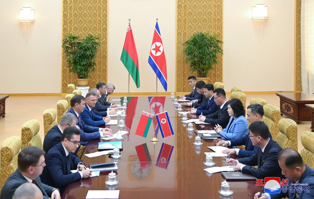 朝鲜外务省副相金正奎等外务省官员和白俄罗斯外交部长一行参加了会谈。