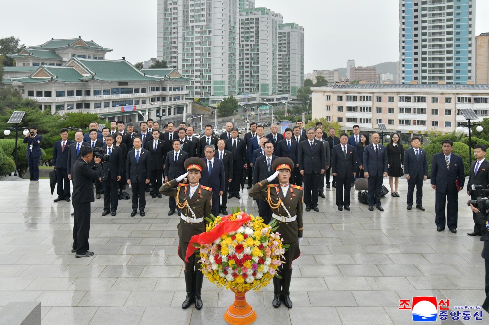 同日,中华人民共和国党政代表团前往位于安州市的中国人民志愿军烈士陵园,凭吊志愿军烈士。(完)